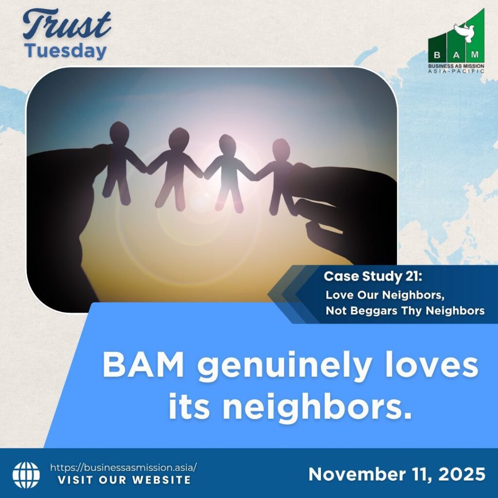 BAM demonstrates Christ's love by loving its neighbors, following Jesus' teaching in Matthew 7:12, 'So in everything, do to others as you would have them do to you.' This Golden Rule guides CBOs’ actions, fostering kindness, compassion, and service to those around them.
