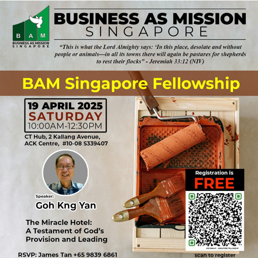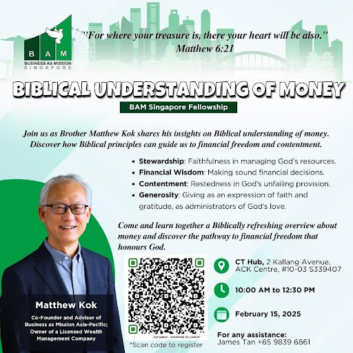 🌟 Join us for the first BAM SG Meet this year, kicking off with an inspiring session on Biblical Financial Wisdom with Bro. Matthew Kok! Learn how to align your finances with God’s design as we explore principles like stewardship, financial wisdom, contentment, and generosity. Discover how these timeless truths can guide you toward financial […]